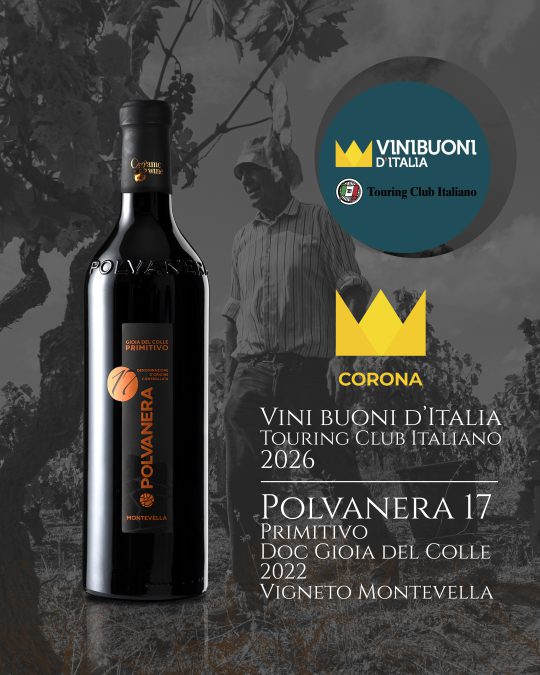 Si continua a festeggiare qui in cantina!! La vendemmia procede alla grande e arrivano le grandi soddisfazioni. La rinomata guida “Vinibuoni d’Italia” edizione 2026, premia il nostro Polvanera 17 2022 – Primitivo DOC Gioia del Colle – Vigneto Montevella – con la Corona, il massimo riconoscimento assegnato dalla guida. Premiati anche il Polvanera 16 2022 – Primitivo DOC Gioia del Colle – Vigneto San Benedetto, Polvanera 14 2023 – Primitivo DOC Gioia del Colle – Vigneto Marchesana, Polvanera 15 2024 – Igt Puglia – Primitivo senza solfiti aggiunti e Polvanera Bianco d’Alessano 2024 – Igt Puglia.